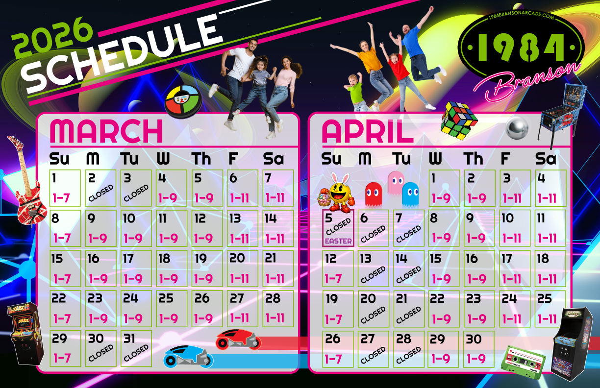 WELCOME ADMISSION LOCATION PARTIES VIDEO GAMES CONTACT US Classic 80s Arcade $12 Admission / All-Night Pass Unlimited Video Games Pinball, Air Hockey and Crane run on quarters Classic and Modern Pinball! $12 Admission / All-Night Pass Unlimited Video Games Pinball, Air Hockey and Crane run on quarters Have Your Party Here! Call ahead to book in advance Details here [PARTIES] Questions? Call us 417-320-6055 Classic 80s Arcade $12 Admission / All-Night Pass Unlimited Video Games Pinball, Air Hockey and Crane run on quarters ADMISSION $12 ENTRY. ALL-NIGHT PASS! LOCATION WHERE TO FIND US PARTIES CALL AHEAD TO BOOK VIDEO GAMES FREE TO PLAY WE ACCEPT CARDS LOCATION Shoppes at Branson Meadows4240 Gretna RD, Branson MO Click for directions to find us. BUY PASSES ONLINE!LIKE US ON FACEBOOK! 4240 Gretna Rd The Shoppes at Branson Meadows (417) 320-6055